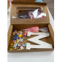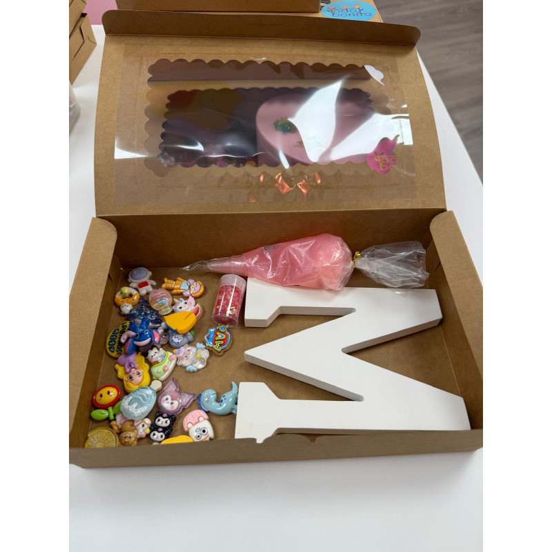 INCLUYE. LA LETRA QUE NOS DIGAS. 25 CHARMS, PEGAMENTO DE COLOR, Y PURPURINA.